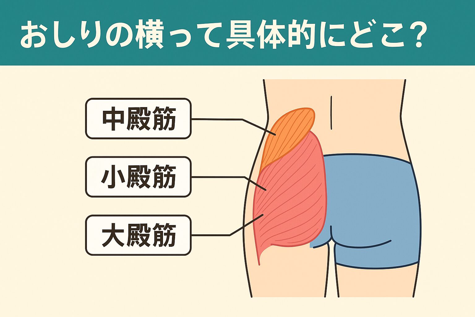 「このあたりかな?」「ズーンと奥が痛い気がする…」なんて声もよく聞きます。そこでまずは、おしりの横の構造をシンプルに整理していきましょう。