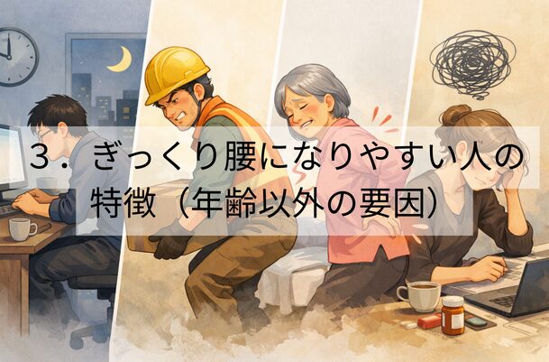 3.ぎっくり腰になりやすい人の特徴(年齢以外の要因)