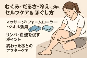 さらに、筋肉のポンプ機能が弱くなると全身の冷えやむくみにもつながると言われているため、日頃のケアが大切とされています。