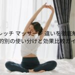 ・静的ストレッチ:運動後や夜におすすめ。筋肉をじっくり伸ばして、リラックス効果を高める役割