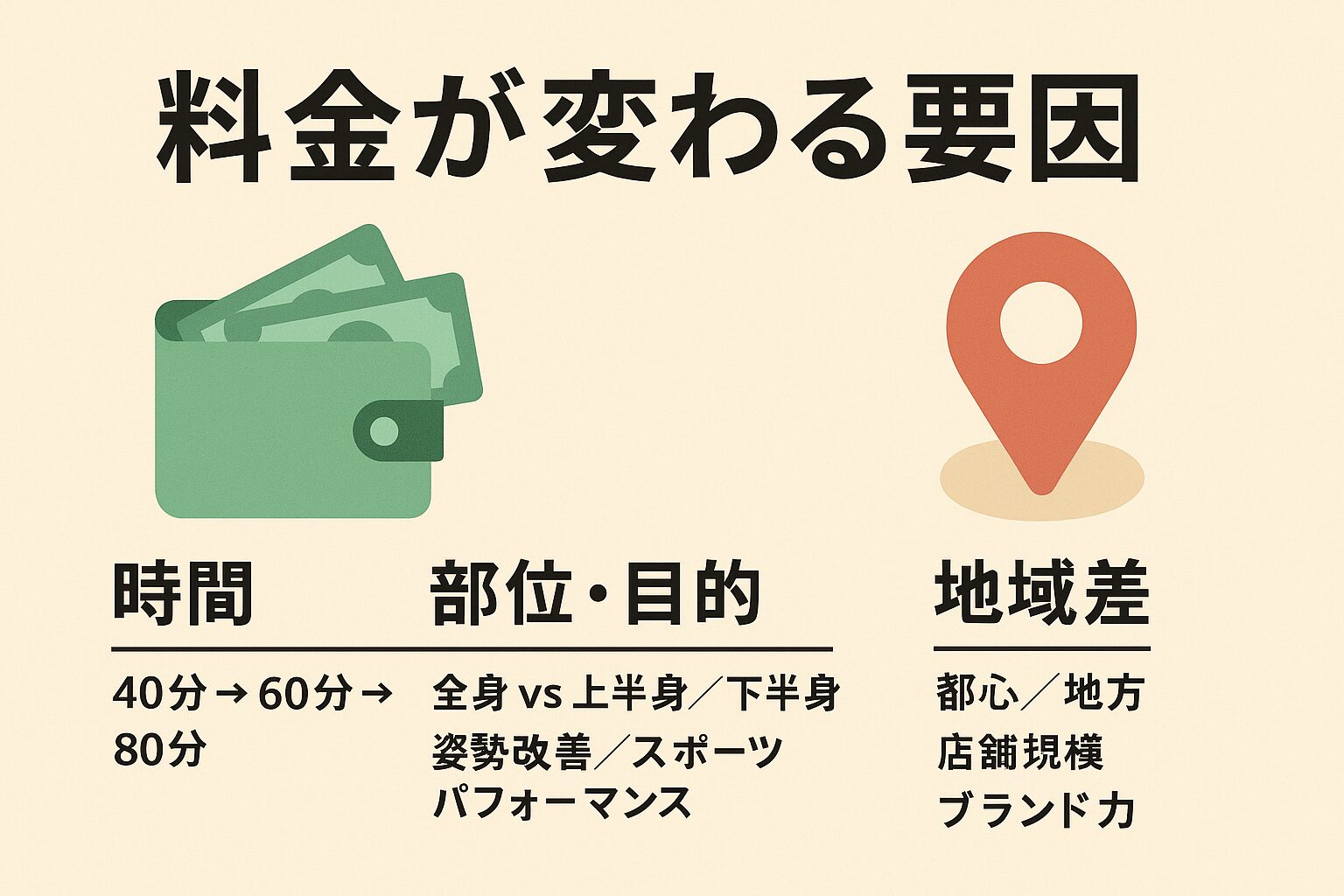 料金が変わる要因:時間・部位・トレーナー指名・地域差など