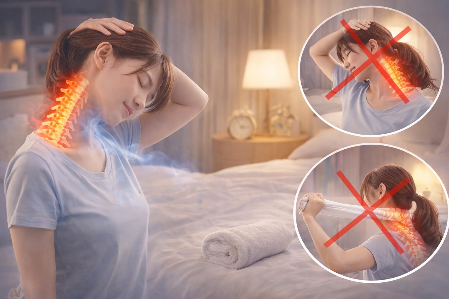 やりがちなNGとしては、勢いよく引っ張ったり、反動をつけて伸ばしたりする動きがあります。こうした方法は一時的に伸びた感覚があっても、筋肉や関節に負担がかかりやすいと考えられています。参考記事でも、無理な動作は不調を悪化させる可能性があると注意されています。「しっかり伸ばしたい」と思うほど力が入りやすいですが、あくまでやさしく、コントロールしながら行うことが大切です。引用元:https://therapistplanet.co.jp/column/straight-neck-stretch/
