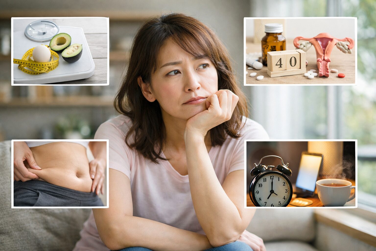 もうひとつ見逃せないのが、女性ホルモンの変化です。40代は更年期にさしかかる時期と重なりやすく、エストロゲンがゆらぎながら低下していくと言われています。加えて、仕事や家のことが重なって、睡眠不足や食事時間の乱れが起こりやすい年代でもありますよね。そうなると、食欲や体調の波を感じやすくなり、「頑張っているのに続かない」と感じる人も少なくないようです。厚生労働省の更年期調査でも、日常生活への影響が示されています。だからこそ、40代女性のダイエットは、ただ食べる量を減らすだけではなく、体の変化を前提に整えていく考え方が大切だと言われています。