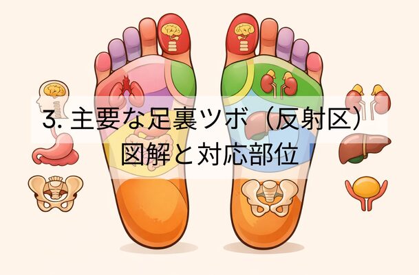 3. 主要な足裏ツボ(反射区)図解と対応部位
