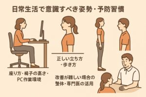 フラットバックの予防や改善を目指すなら、毎日の生活の中でのちょっとした意識が大切だと言われています。特別な運動をしなくても、座り方や歩き方を見直すだけで体への負担を減らせるケースもあるようです。