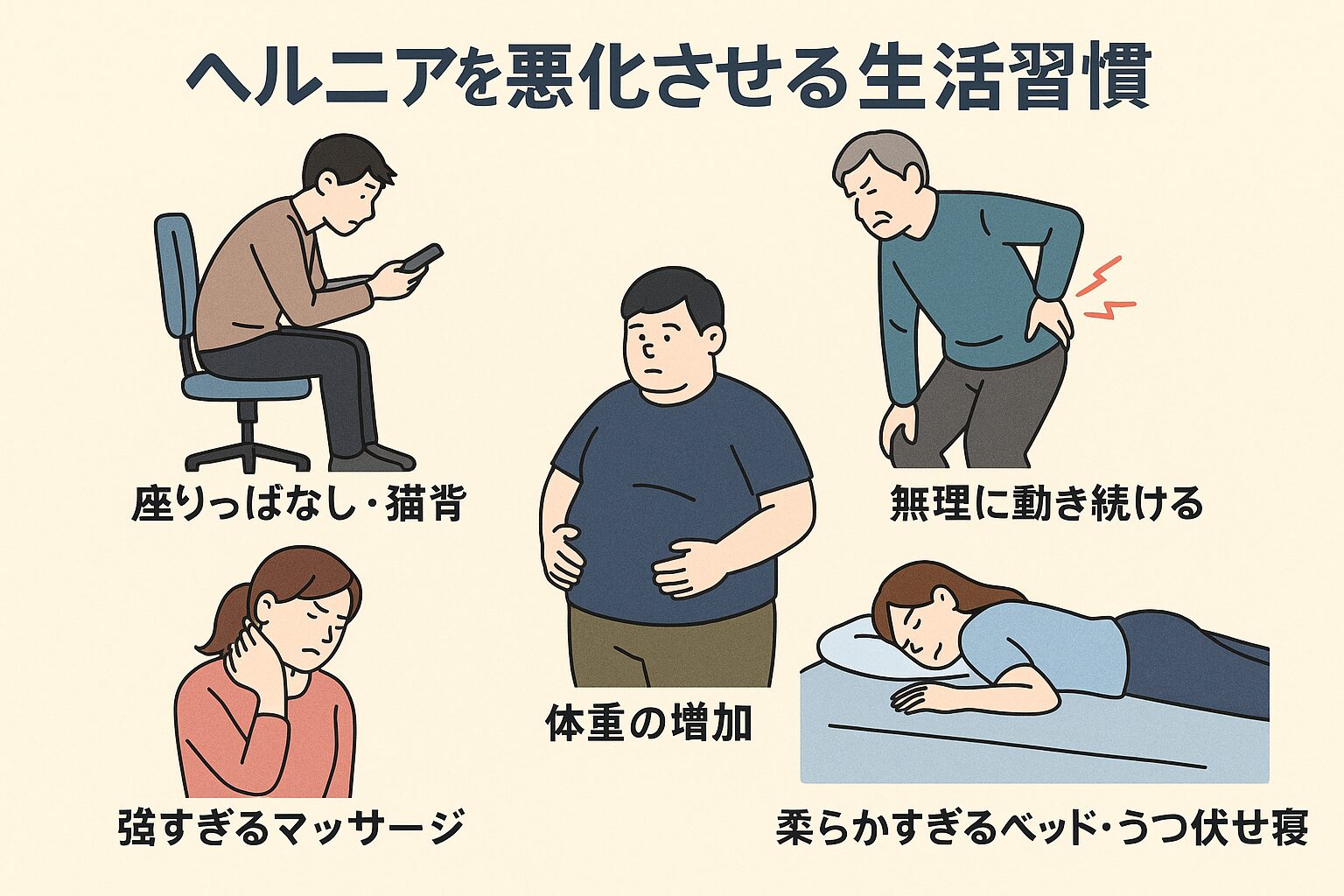 ヘルニアを悪化させる生活習慣|やってはいけない行動とは?
