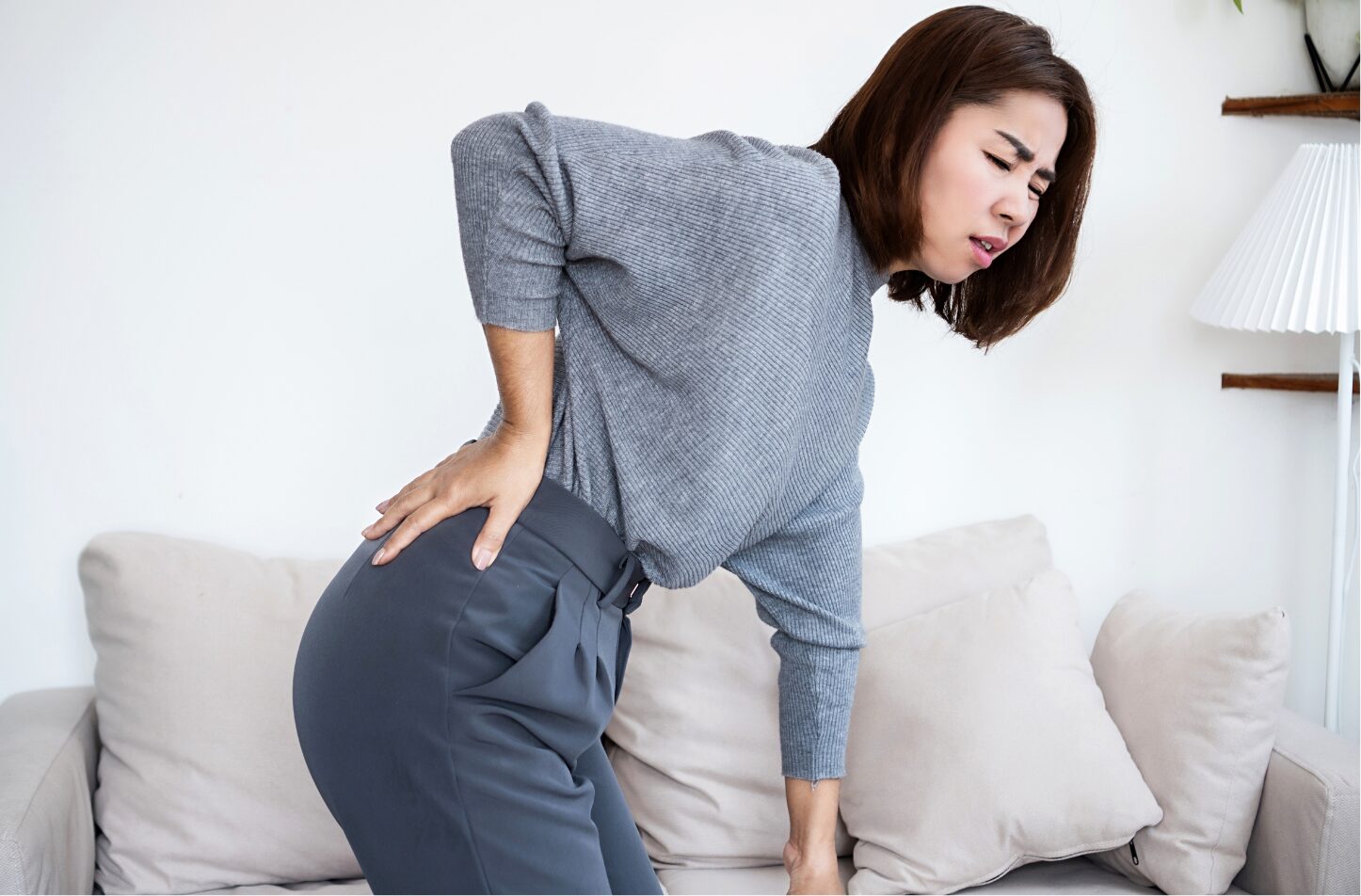 よく関係すると言われているのが、腰椎椎間板ヘルニアです。背骨の間にある椎間板が神経に触れたり、刺激したりすることで、お尻から足にかけて痛みやしびれが出ることがあると言われています。特に、前かがみの姿勢や重い物を持つ動作で違和感が強くなる方もいるようです。