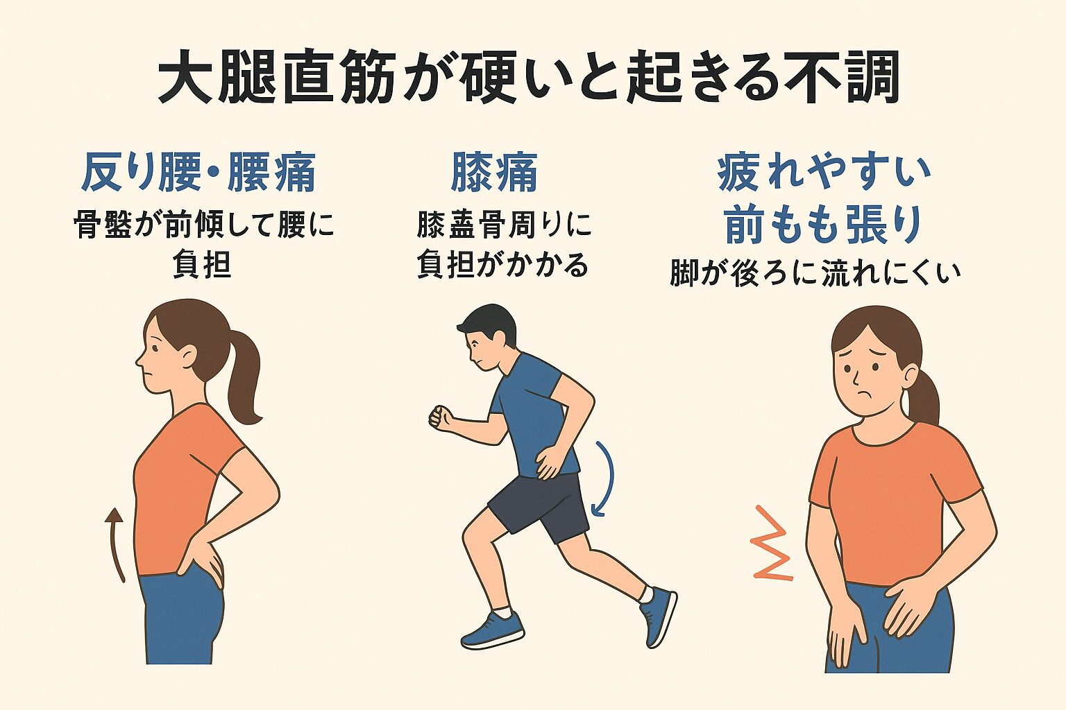 2. 大腿直筋が硬いと起きる不調(反り腰・膝痛・走りにくさ)