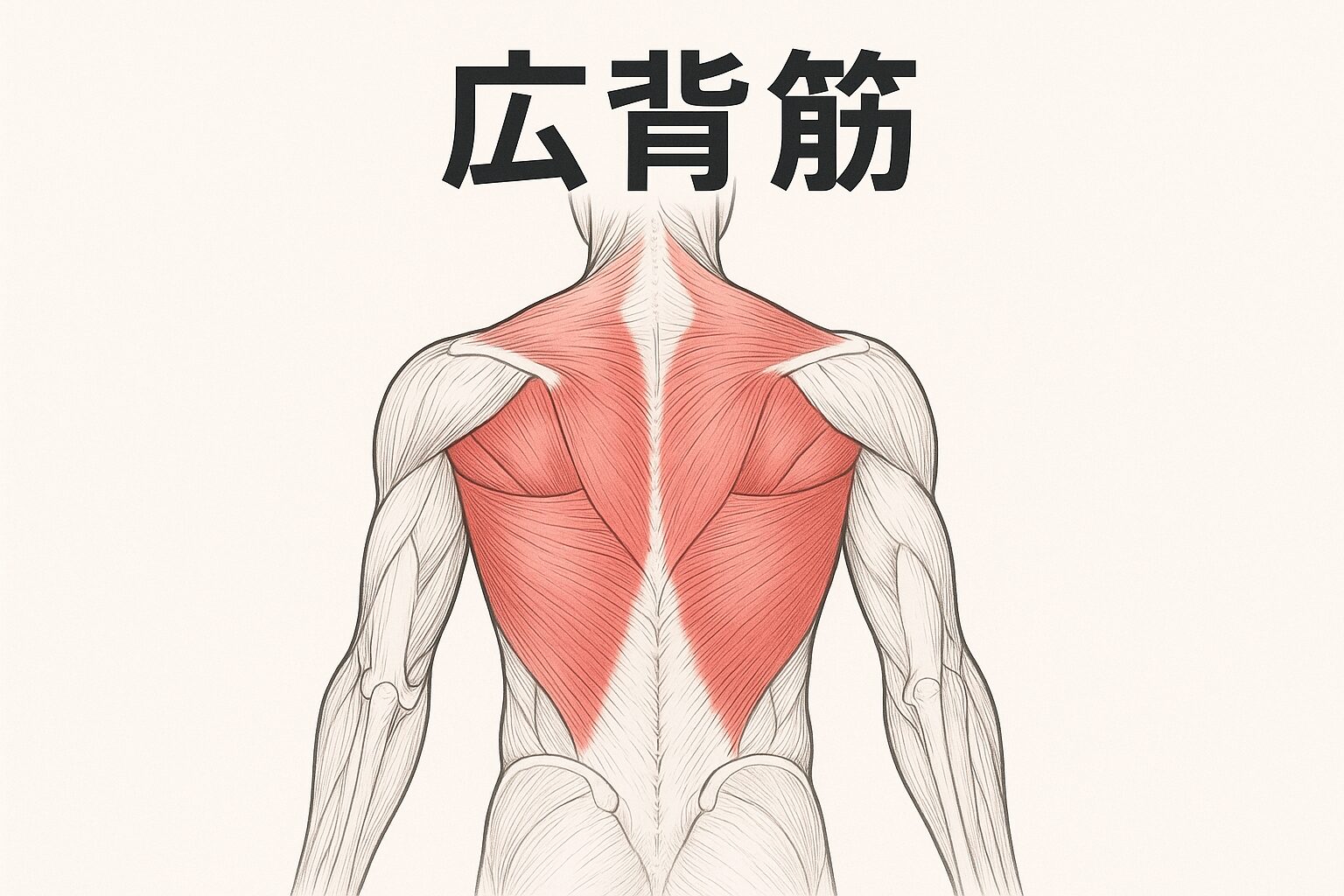 「広背筋ってどこにあるの?」と聞かれることが多いですが、背中の中でも特に面積が大きい筋肉と言われています。背中の中央から腰あたりまで広がり、脇の下にもつながっているので、体を後ろに引く動きや腕を引き寄せる動作に関係しているそうです。肩甲骨の動きにも関与しているため、日常生活でも意外とよく働いているとも言われています。