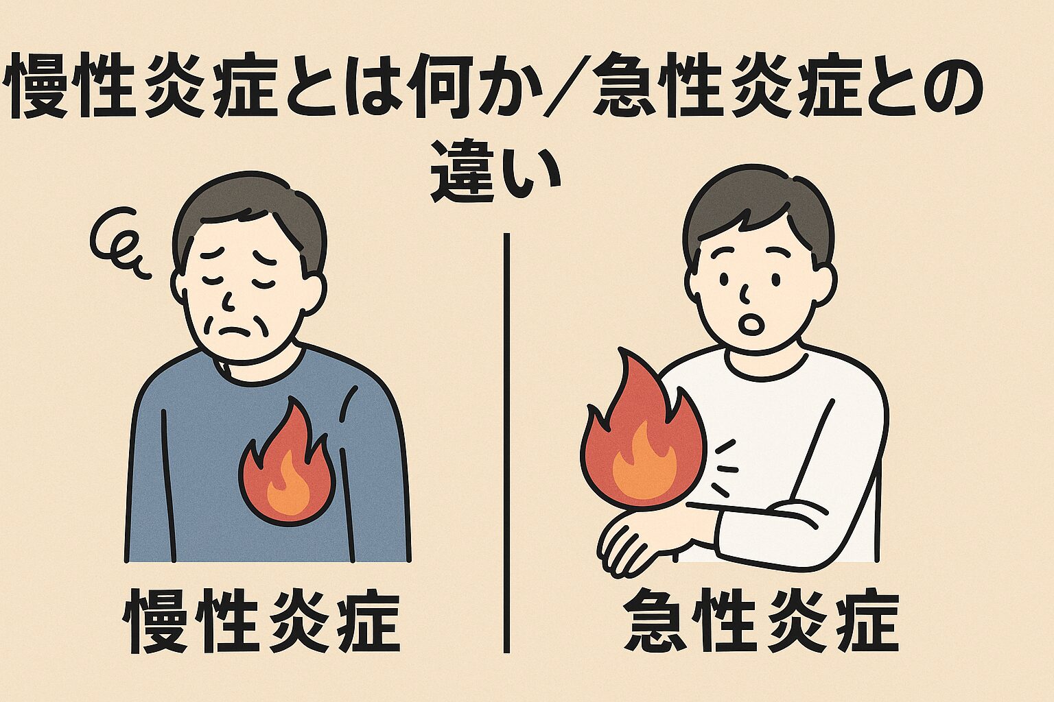 「慢性炎症」という言葉はよく聞きますが、ぱっとイメージがわかない方も多いと思います。急なケガのような“赤く腫れて熱をもつ炎症”とは違い、慢性炎症は体の中で静かに続くと言われています。参考記事(引用元:https://stretchex.jp/6165)でも、体がずっと軽いストレスを抱えたような状態が続くと説明されています。