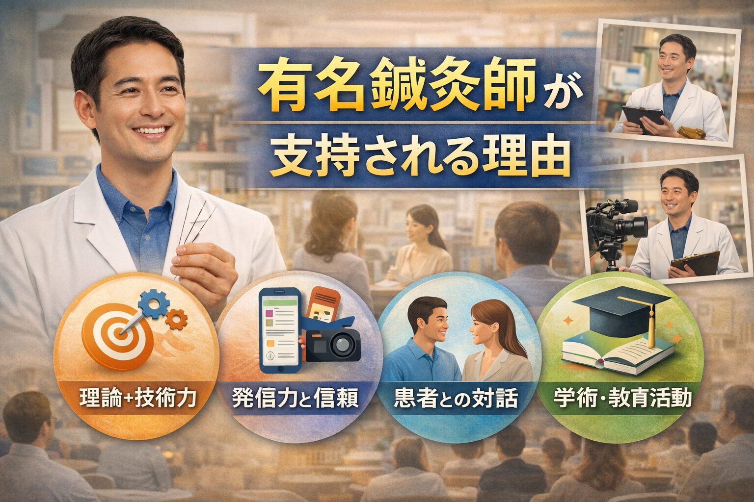 近年は、SNSや書籍、メディア出演を通じて知られる鍼灸師も増えています。