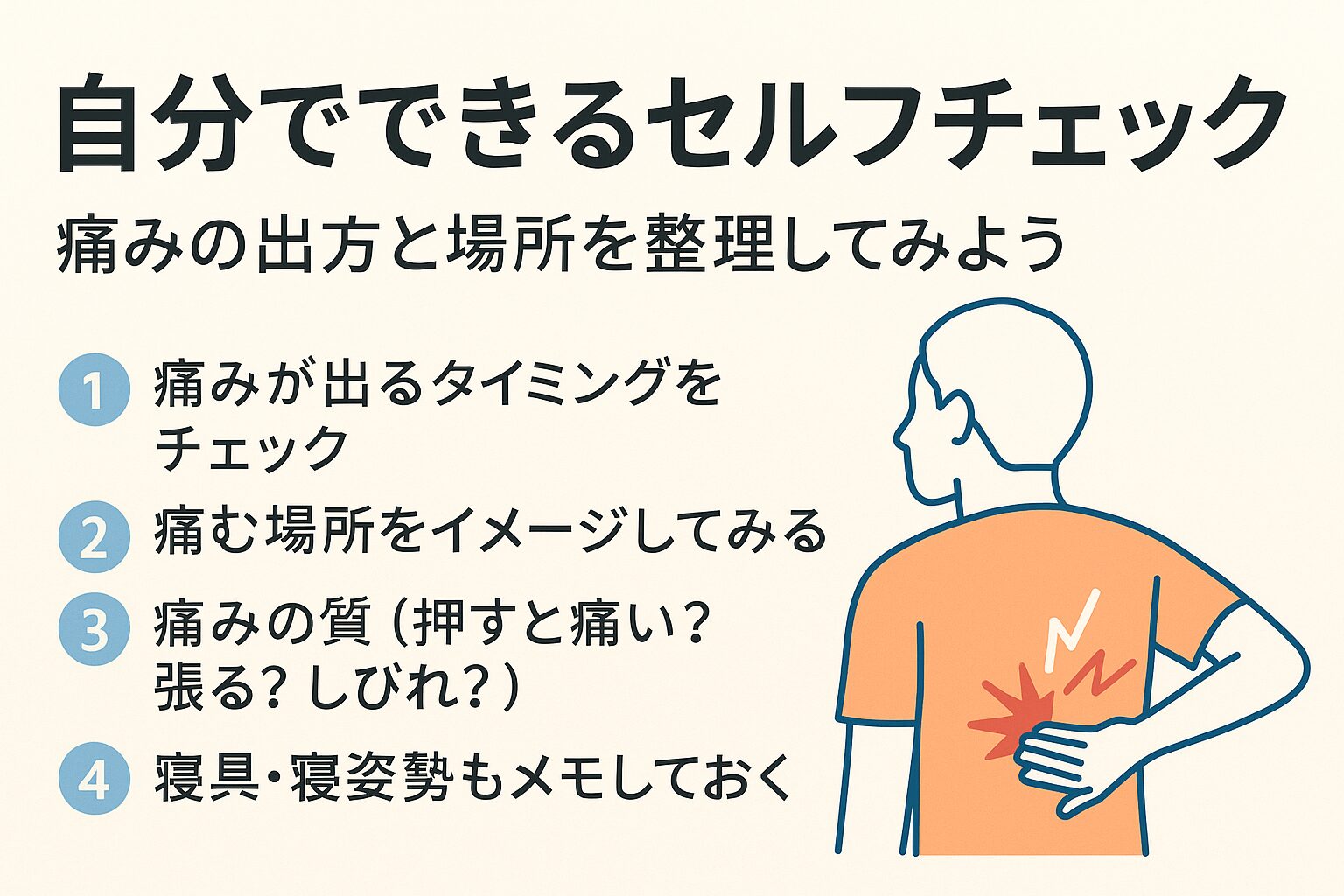 自分でできるセルフチェック|痛みの出方と場所を整理してみよう