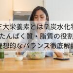 会話っぽく言うと、「主食でエネルギー(炭水化物)」「主菜で体づくり(たんぱく質)」「副菜で調子を整える(ビタミン・ミネラル)」を回収するイメージです。