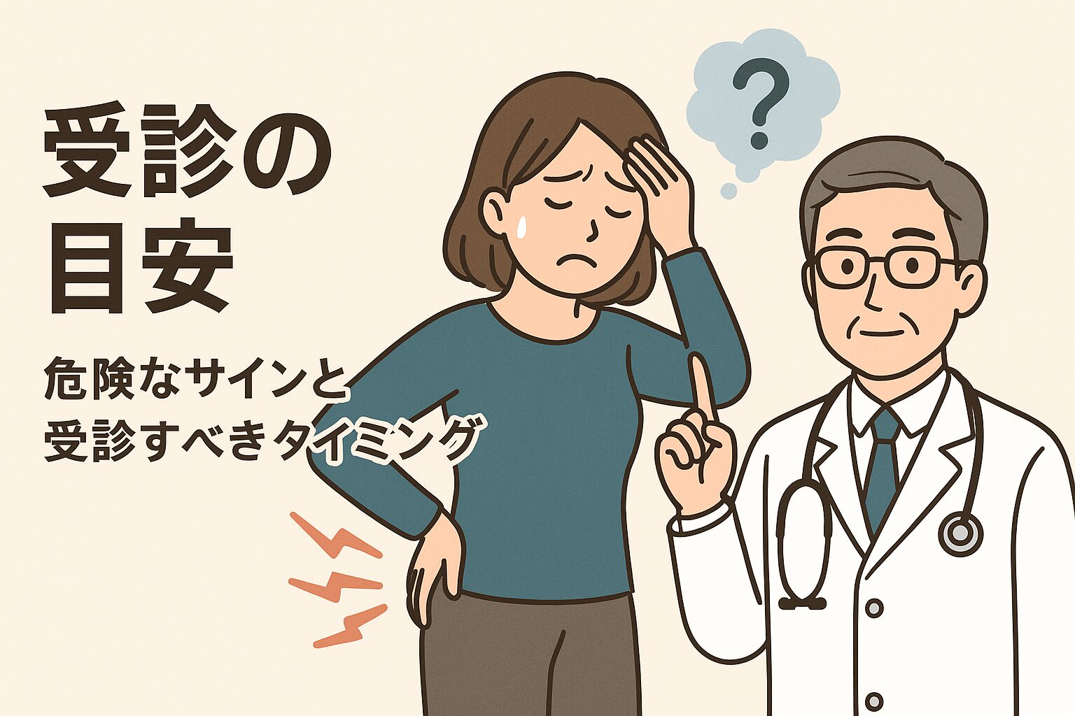 発熱と腰痛が同時に起こっているときは、「いつもの筋肉痛とは違うかも…」という小さな違和感がヒントになる場合もあるとか。そこで、どんなタイミングで専門家へ相談すると安心なのか、わかりやすくまとめてみました。