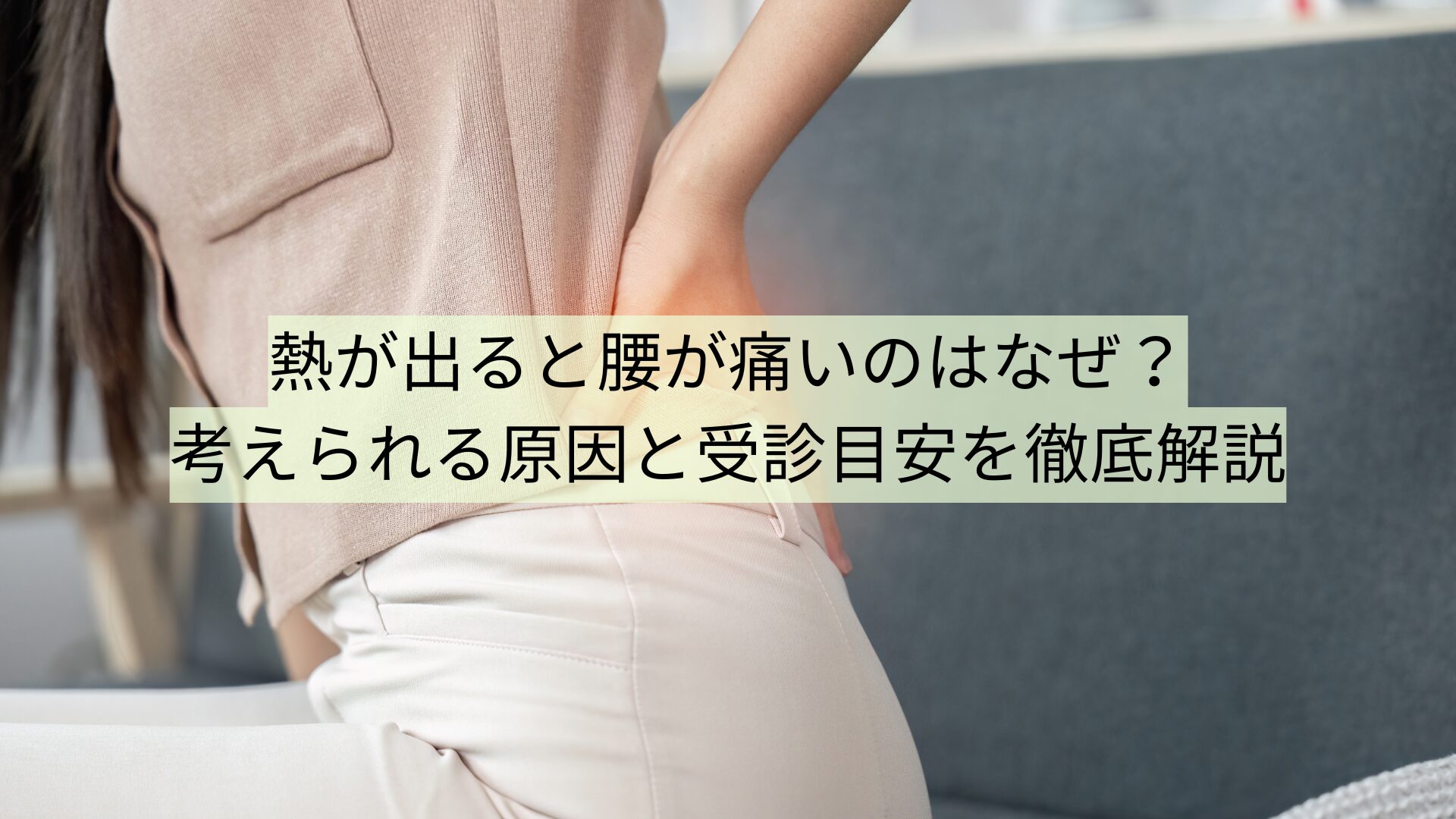 「熱が出て腰が痛いときって、どこまで様子を見ていいの?」と不安になる方は多いです。確かに風邪やインフルエンザでも腰痛が出ることがあると言われていますが、中には早めに相談したほうがいいサインもあると言われています。(引用元:https://www.mediaid-online.jp/clinic_notes/information/258/)