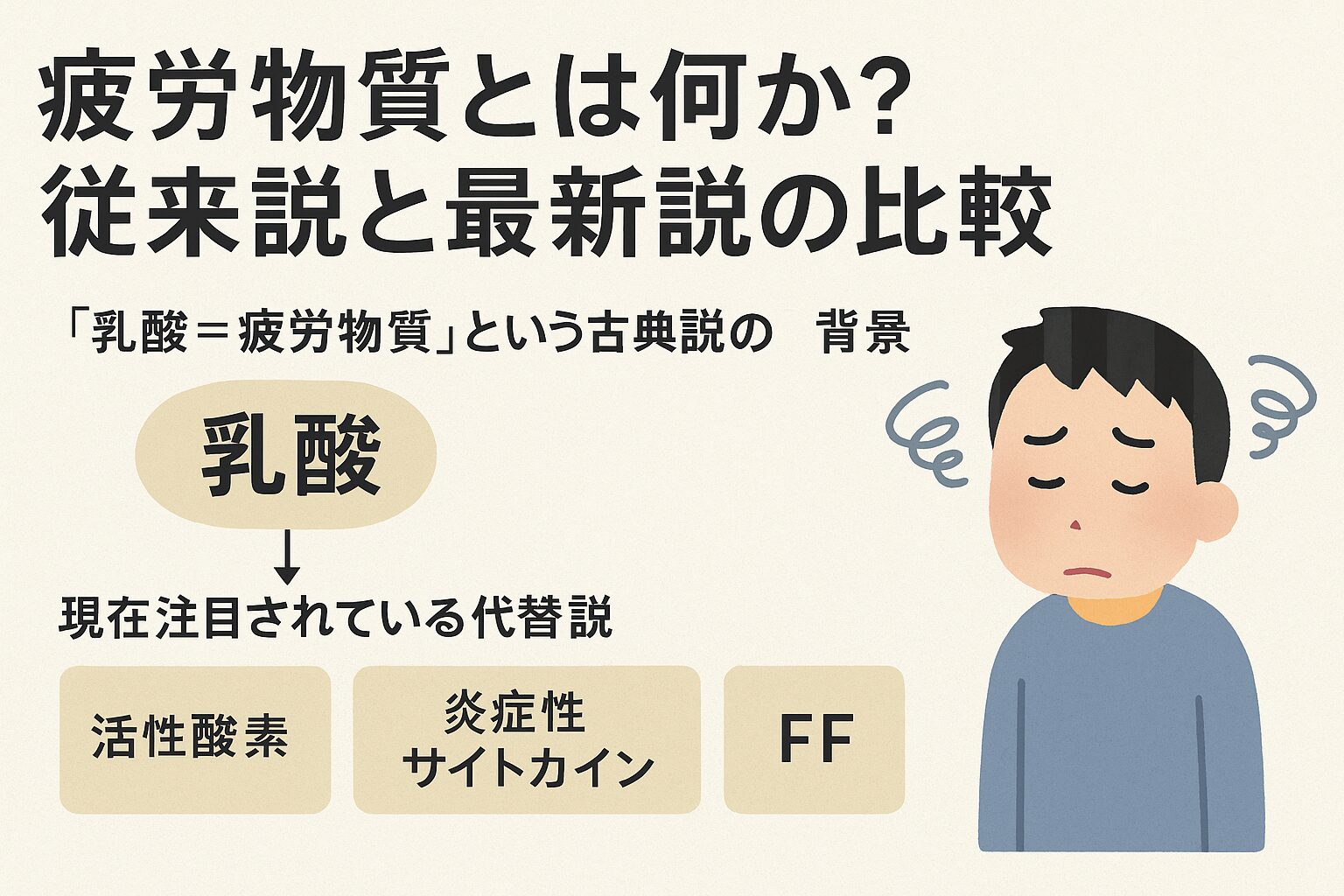 「疲れの正体って、結局なんなんだろう?」と感じたことはありませんか。昔からよく耳にするのが「疲労物質=乳酸」という考え方です。これは、運動後に筋肉に乳酸がたまると筋肉痛や疲労感が起こるという古典的な説で、長い間“常識”とされてきました。実際、20世紀初期の研究では、激しい運動をすると筋肉内の乳酸濃度が上昇することが観察され、それが疲労の原因と考えられたといわれています【引用元:https://stretchex.jp/5682】。