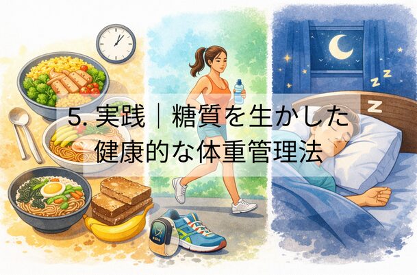 筆者: 気持ちはわかります。ただ、生活習慣では適度な運動や休養(睡眠を含む)も大切と整理されていて、体重管理も“食事だけの勝負”になりづらいと言われています。逆に糖質を極端に減らしすぎると、主食由来の栄養や食物繊維が不足しやすいので、体調や続けやすさを見ながら調整するのが無難です。