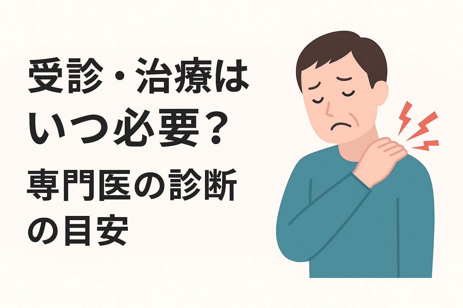 「少し様子をみたけれど、肩の付け根のズキズキが引いてこない」という状況なら、早めに専門家の触診や相談を受けるタイミングと考えられています。