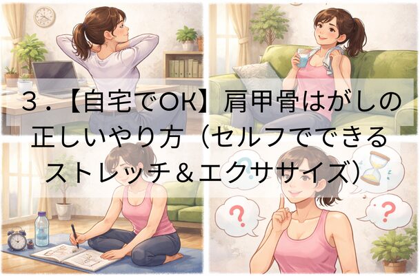 3.【自宅でOK】肩甲骨はがしの正しいやり方(セルフでできるストレッチ&エクササイズ)