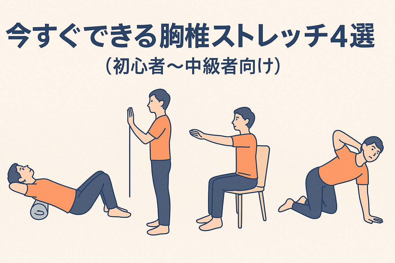 「ねぇ、背中がなんだか重いなぁ…」って日、ありませんか?そんな時こそ、胸椎ストレッチがサッと効くことが多いんです。今回は初心者から中級者まで無理なく取り入れられる4つの方法をご紹介します。