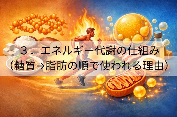 3.エネルギー代謝の仕組み(糖質→脂肪の順で使われる理由)