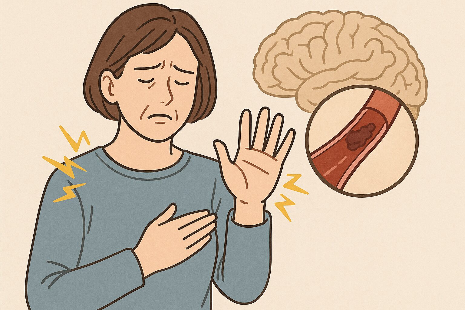 「脳梗塞の手のしびれはどんな感じ?」というテーマで話していると、実は“手以外”にもサインが出ることが多いと言われています。手の違和感が気になり始めた方から「そういえば顔も変だったかも…」と相談されることもあり、体は複数のところで一緒に変化が出ることがあるという流れですね。ここでは、気づきづらい前兆を一緒に整理していきます。