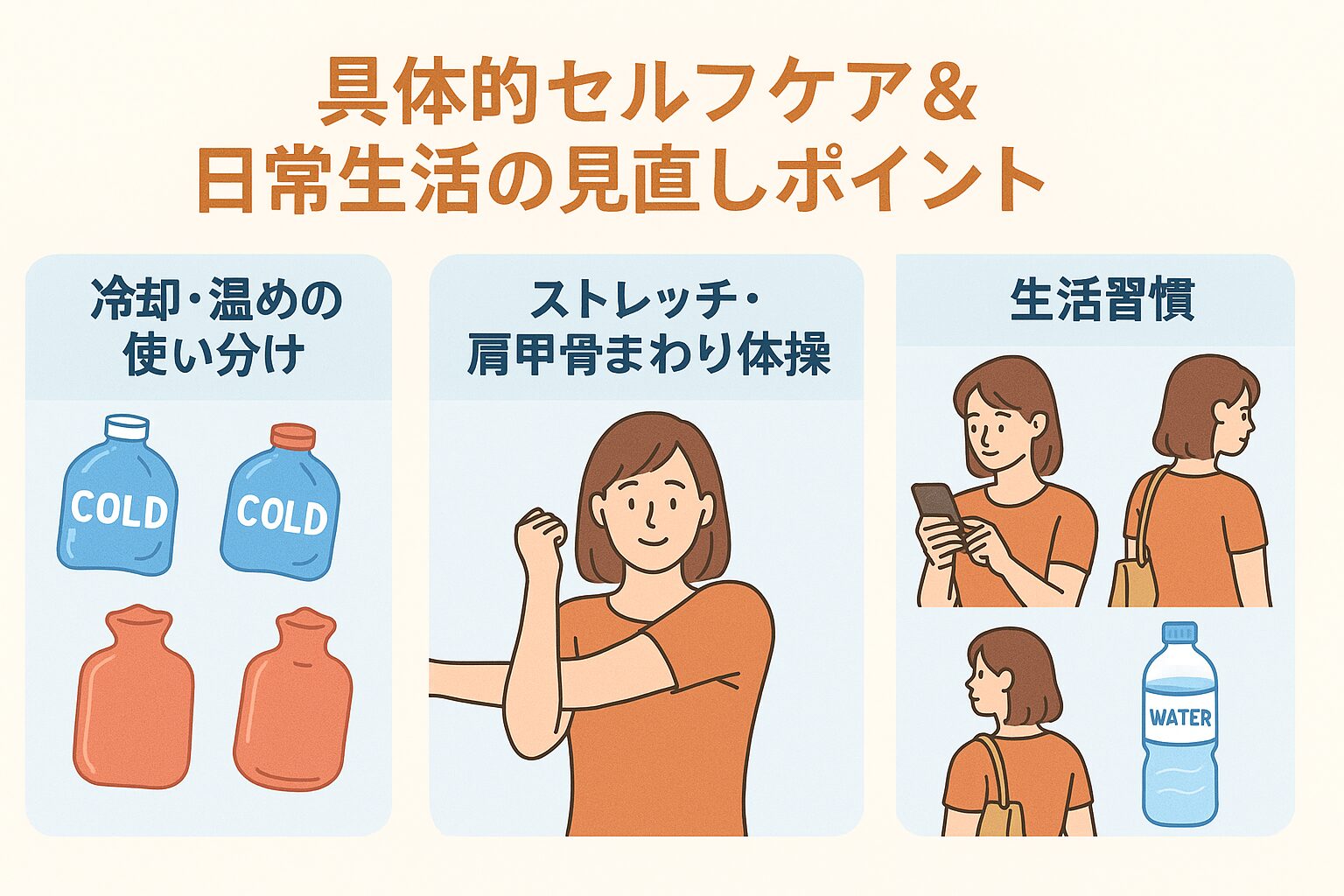 腕の付け根の内側が痛む時、まず気になるのが「冷やすべき?温めるべき?」という点ですよね。