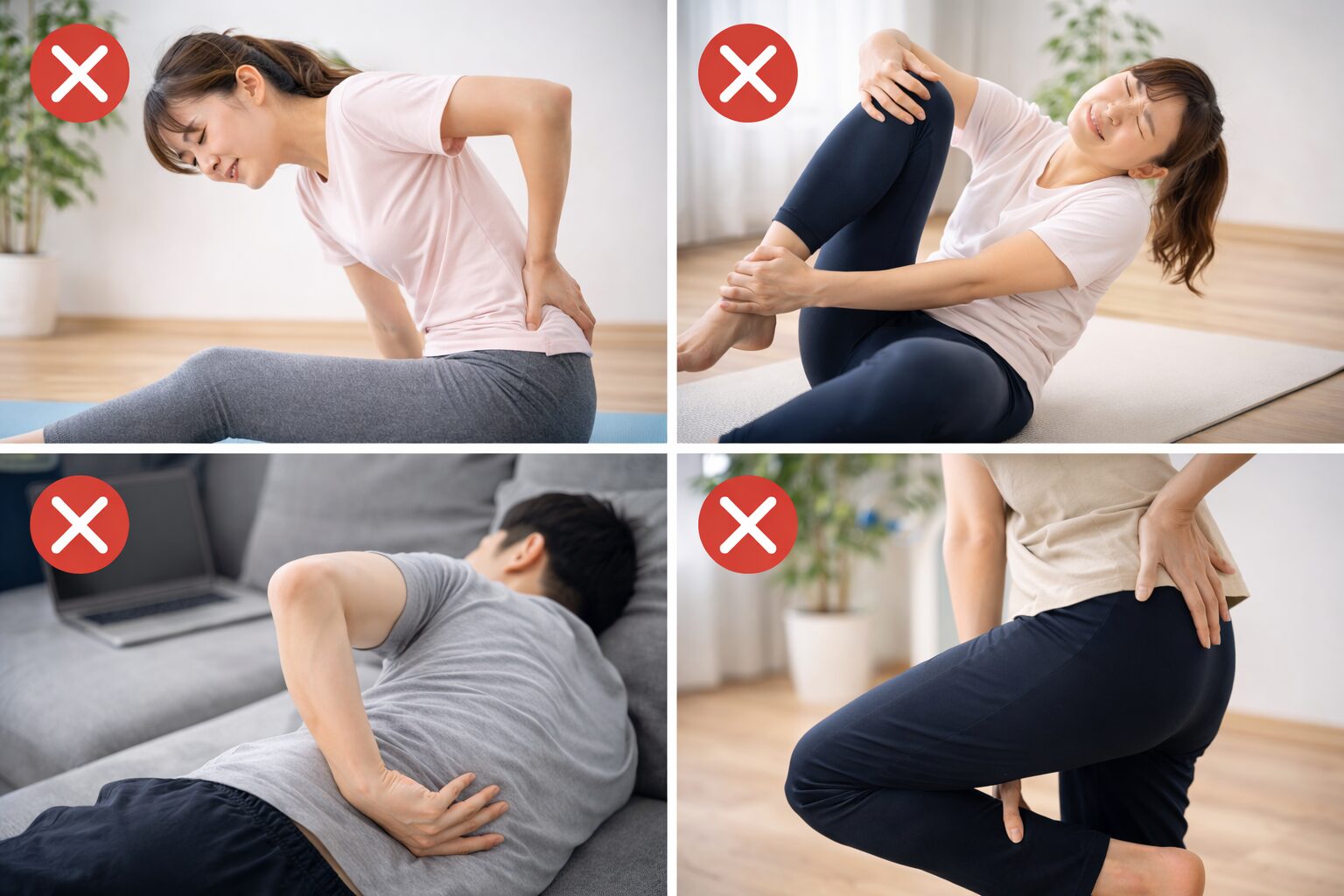 「ネットで見たから大丈夫」と自己流で進めてしまうのも、意外と見落としがちなポイントです。ストレッチやトレーニングは、体の状態に合わせて調整することが大切だと考えられています。たとえば、回数を増やしすぎたり、急に強い負荷をかけたりすると、腰まわりに余計なストレスがかかることもあるそうです。さらに、日常生活の姿勢も見直したいところです。長時間の反り腰姿勢や、片側に体重をかける立ち方などは、知らないうちに負担をためやすいと言われています。「ストレッチはやっているのに楽にならない」と感じる場合は、こうした日常のクセも関係している可能性があるようです。無理なく続けるためにも、動きだけでなく普段の過ごし方にも目を向けていくことが大切だとされています。