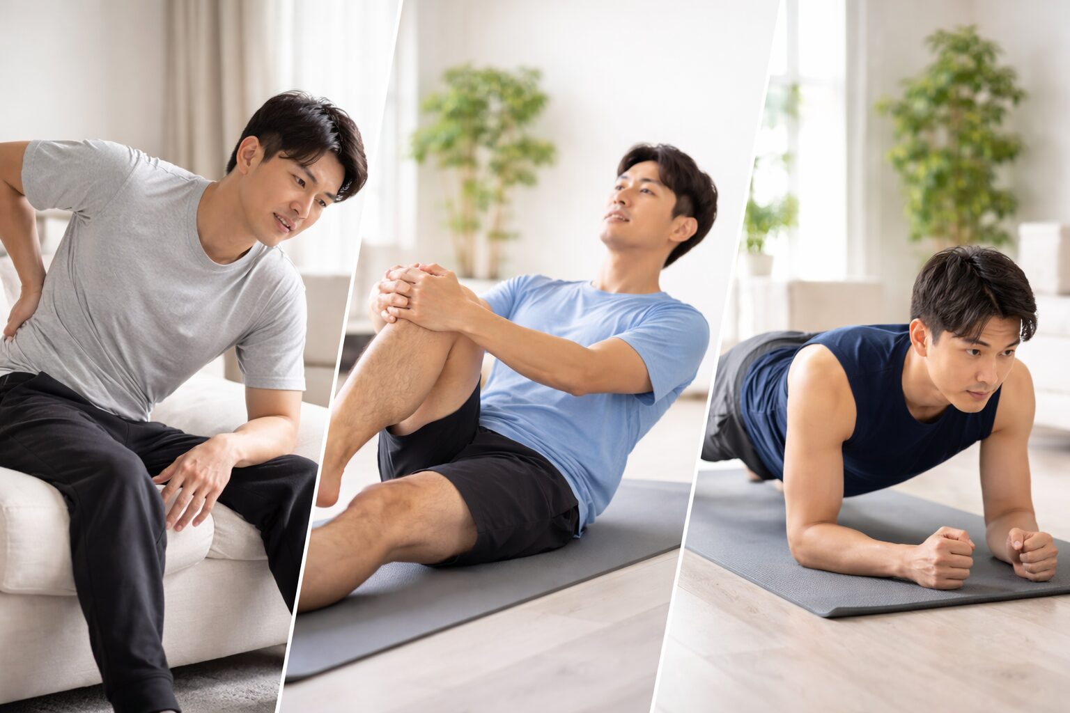 「筋トレも必要なの?」と思うかもしれませんが、体幹を安定させることは再発予防につながると言われています。たとえばプランクのような運動は、腰に過度な負担をかけにくく、姿勢を支える筋肉を鍛える目的で使われることが多いです。ただし、痛みが強い時期に無理に行うのは避けたほうがいいとも考えられています。体の反応を見ながら取り入れることが大切です。