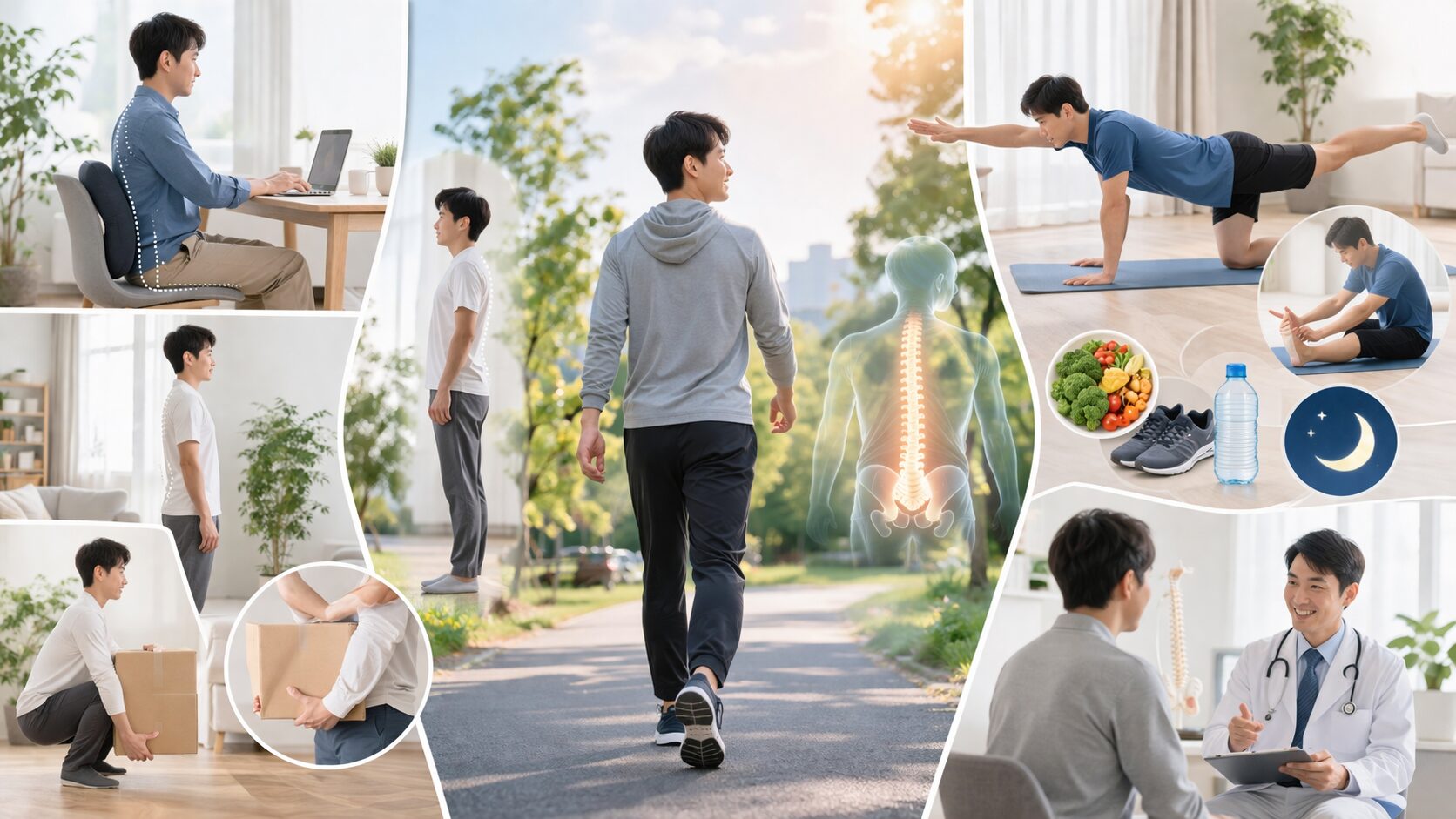 「リハビリが終わったら安心」と思いがちですが、腰椎椎間板ヘルニアは日常の体の使い方も大事だと言われています。たとえば、座るときに深く腰かけて背もたれを使う、立つときは反りすぎず片側に体重をかけすぎない、といった工夫が基本になります。さらに、物を持つ場面では腰だけを曲げるより、膝を使って体の近くで持ち上げるほうが負担を抑えやすいと考えられています。長時間座りっぱなしになりやすい方は、こまめに立って体勢を変える意識も大切です。参考記事でも、姿勢の改善や継続的な運動が再発防止につながると紹介されています。引用元:⭐︎参考記事 https://therapistplanet.co.jp/column/023/