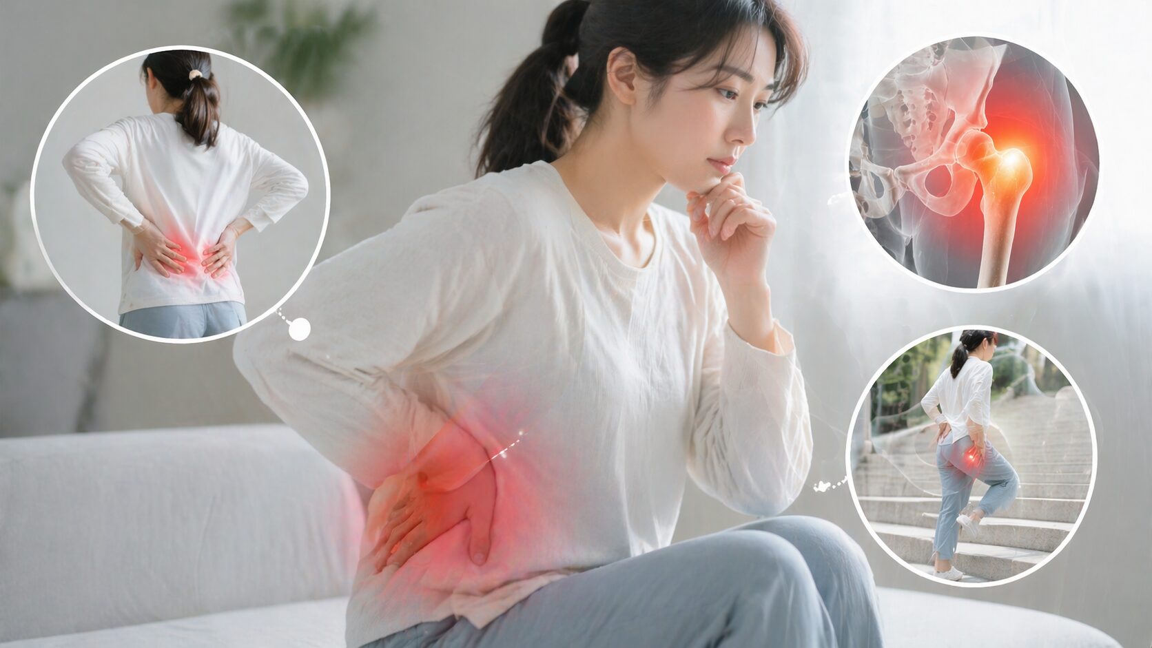 「腰がつらいだけだと思っていたのに、いつの間にか股関節まで痛い…」そんな流れは珍しくないようです。というのも、腰と股関節は骨盤を中心に連動して動くため、どちらかに負担がかかると、もう片方まで影響しやすいと言われています。立つ、座る、歩く、しゃがむ。こうした日常の動きでも、この2つはいつもセットで働いています。だからこそ、腰痛から股関節痛へ広がることもあれば、その逆が起こることもあるようです。