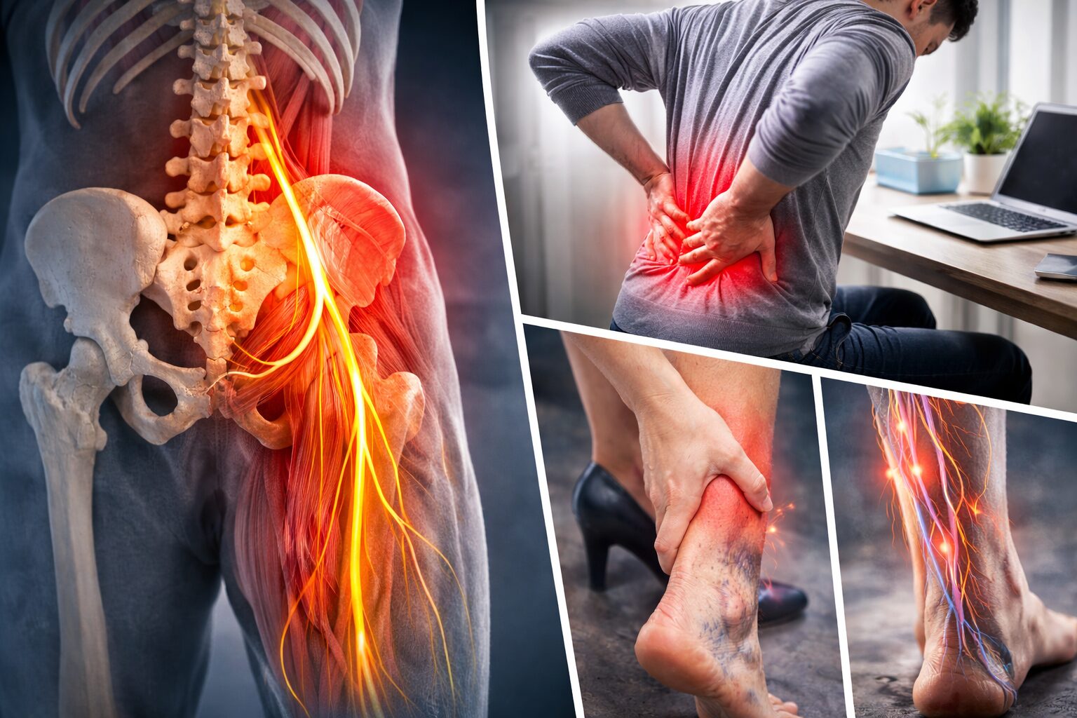 「腰痛もあるし、ふくらはぎもだるいけど、結局どのタイプなの?」と迷いますよね。まず目安として見たいのは、いつ・どこに・どう出るかです。たとえば、夕方になるほど脚が重いなら、長時間の同じ姿勢で血流が滞りやすく、むくみっぽさが重なっている可能性があると言われています。逆に、片側だけだるい、腰からお尻・脚にかけて違和感が続く、という場合は、坐骨神経の通り道に沿った影響も考えられるようです。参考記事でも、腰痛とふくらはぎのだるさは筋肉・神経・血流が重なって起こることがあると紹介されています。