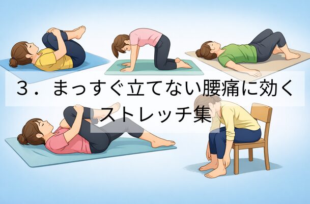 3.まっすぐ立てない腰痛に効くストレッチ集