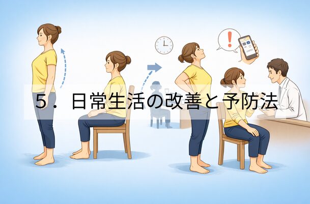 「気づいたらずっと座ってた…」これ、腰にはつらいと言われています。対策としては、30〜60分に一度立ち上がって数歩歩く、座りっぱなしを減らす、などの工夫が現実的です。さらに、スマホをのぞき込む姿勢が続くと背中が丸まりやすいので、画面の高さを上げるだけでも違いが出る場合があります。大きく変えようとせず、“できるところから”がコツです。