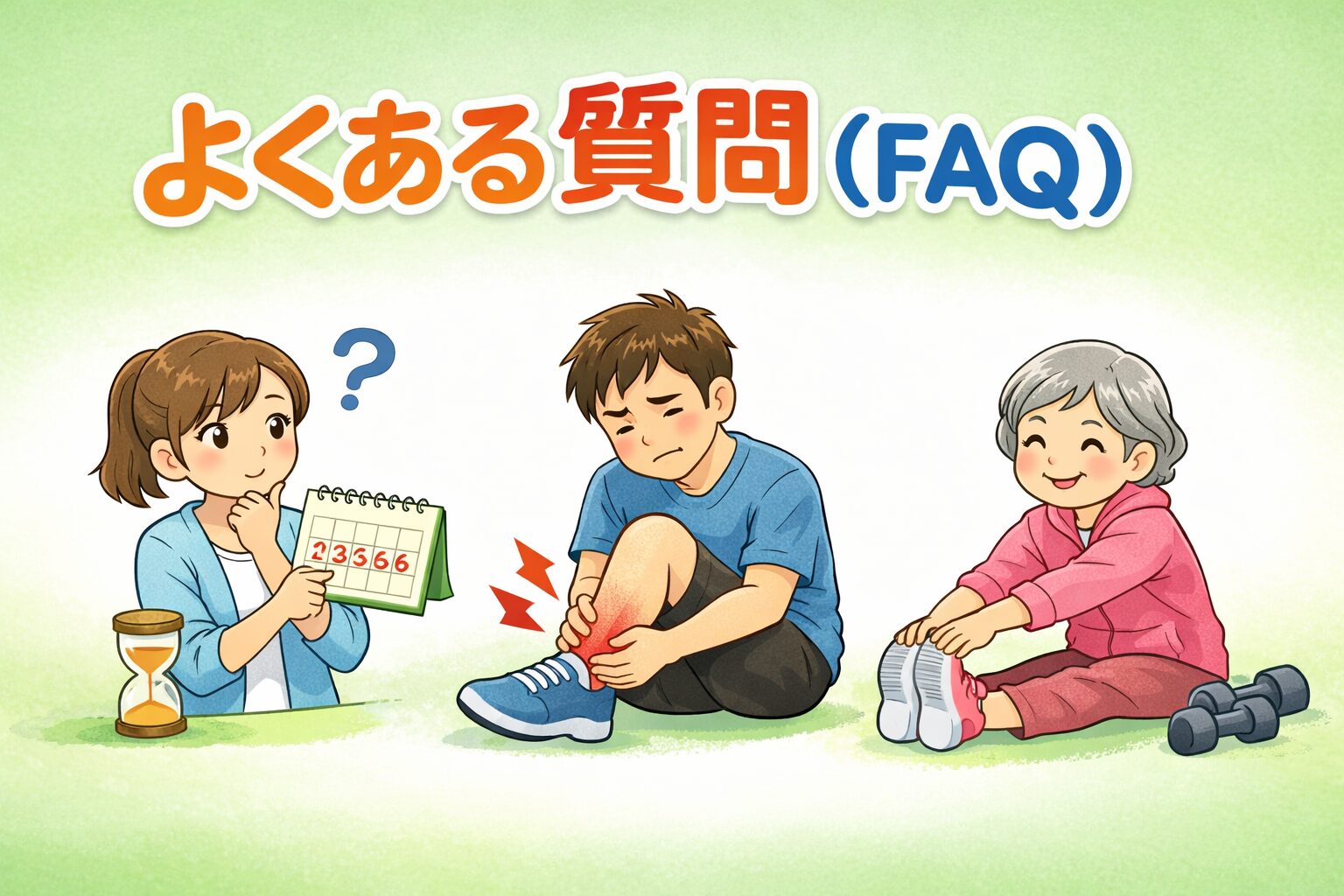 足首の硬さは、筋肉(ふくらはぎ)やアキレス腱、足裏のこわばりなどが絡むケースがあるようです。なので、短期で一気にというより、毎日3〜5分でも続けるほうが現実的、と紹介されています。変化の感じ方は人それぞれなので、左右差やしゃがみやすさなど“体感の目安”で見ていくのがおすすめです。