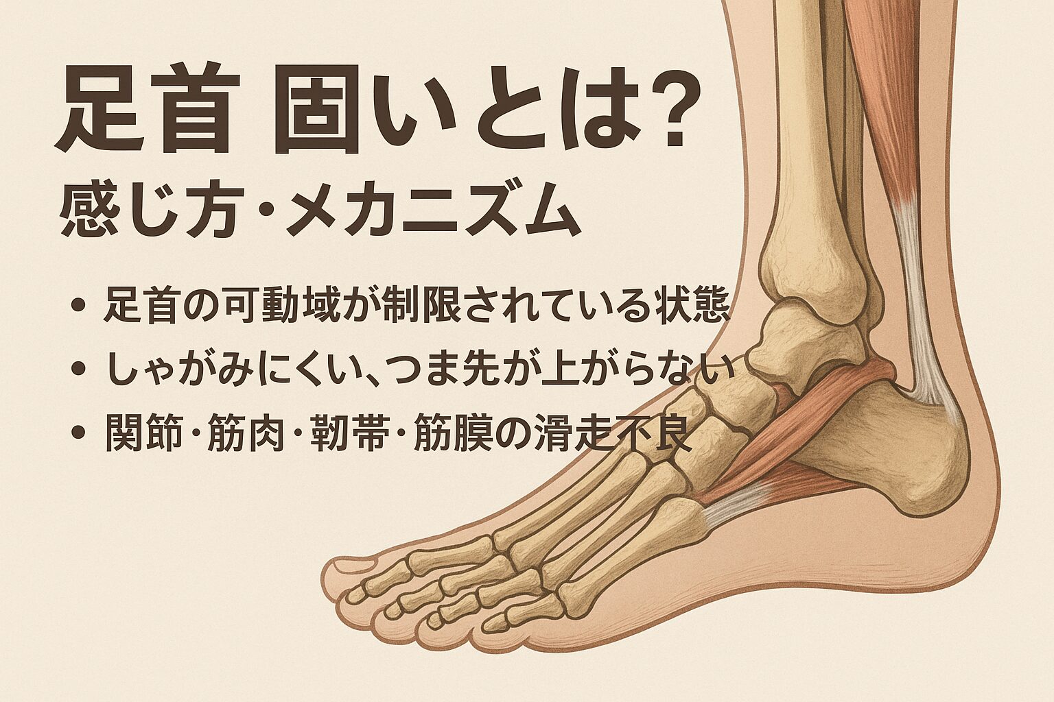 これらが複合的に絡み合うことで、「足首が固い」という感覚につながると考えられています。