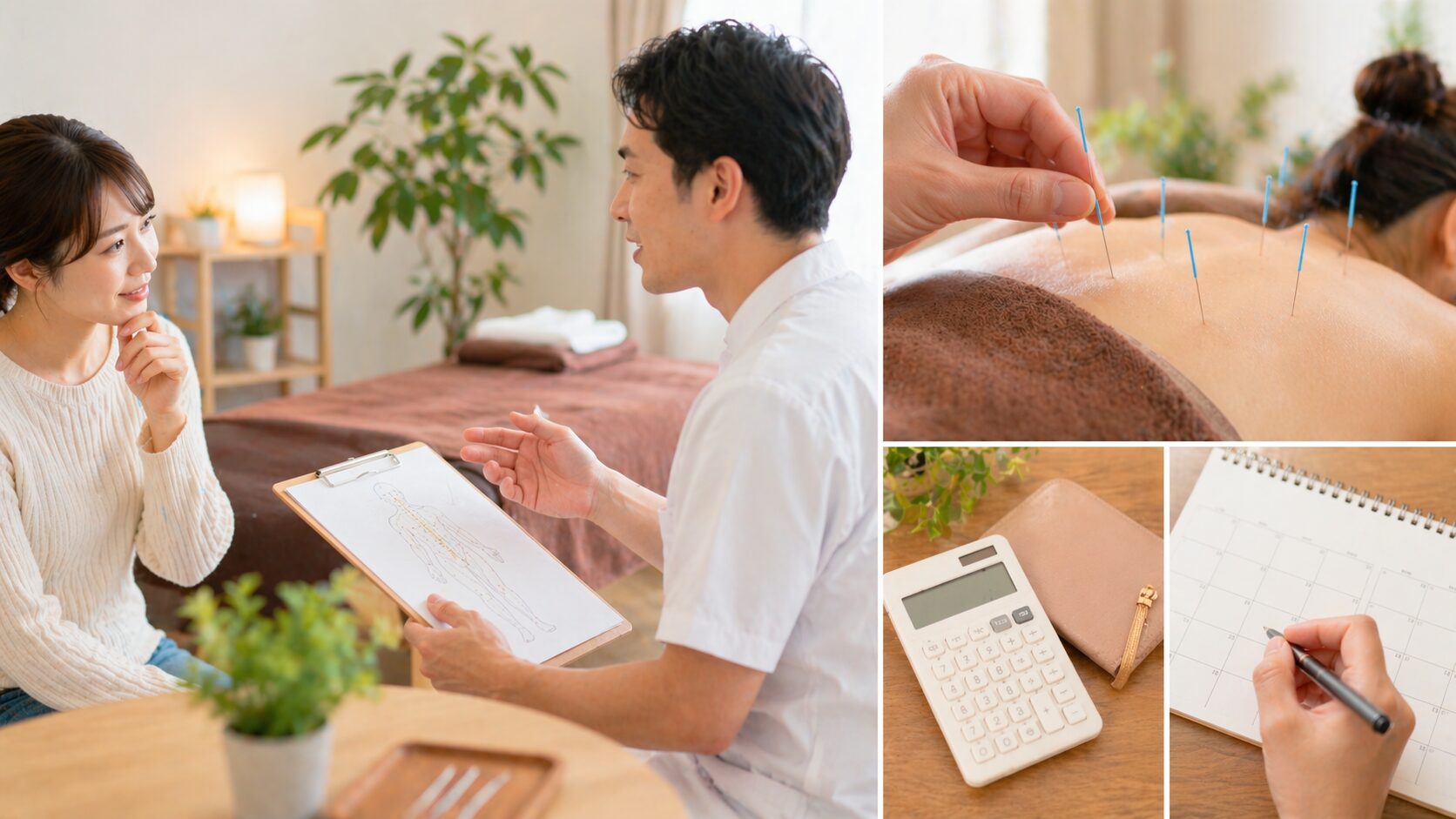 「費用はどれくらいかかるの?」という点も大事ですよね。鍼灸の料金は院によって差がありますが、1回あたり3,000円〜9,000円前後が目安とされることが多いようです。初回はカウンセリング料が加わる場合もあるため、少し高くなるケースも見られます。