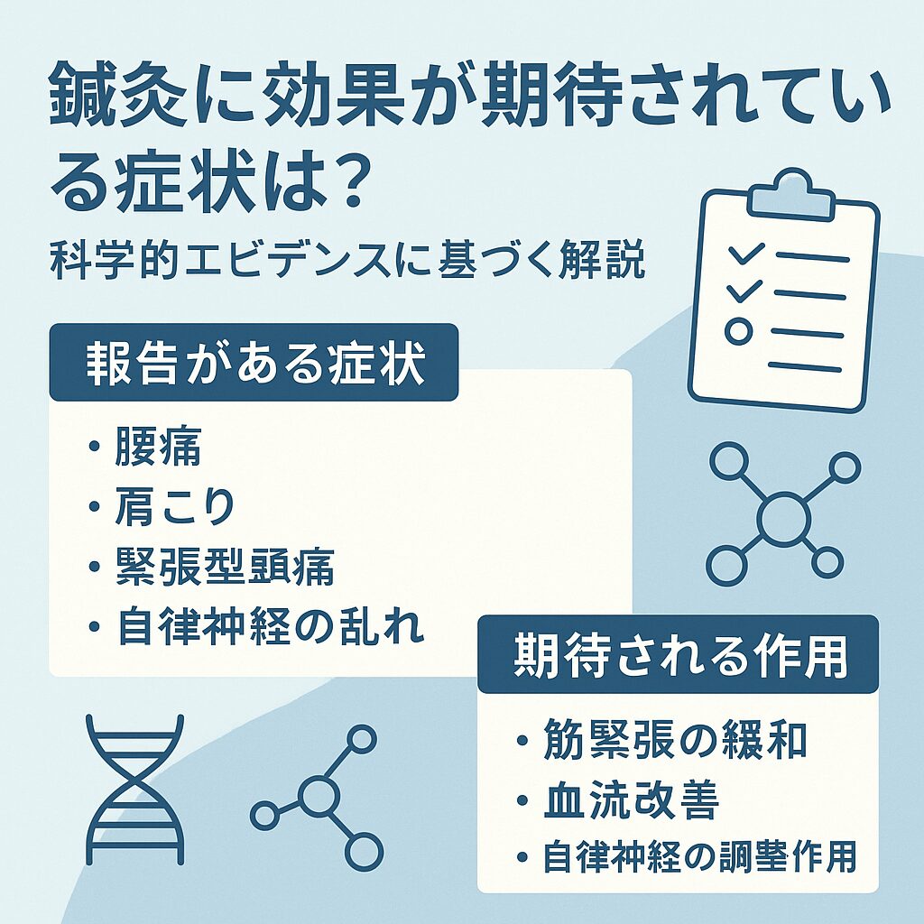 鍼灸は万能ではないが、一定の研究で効果が示されている領域があると言われています