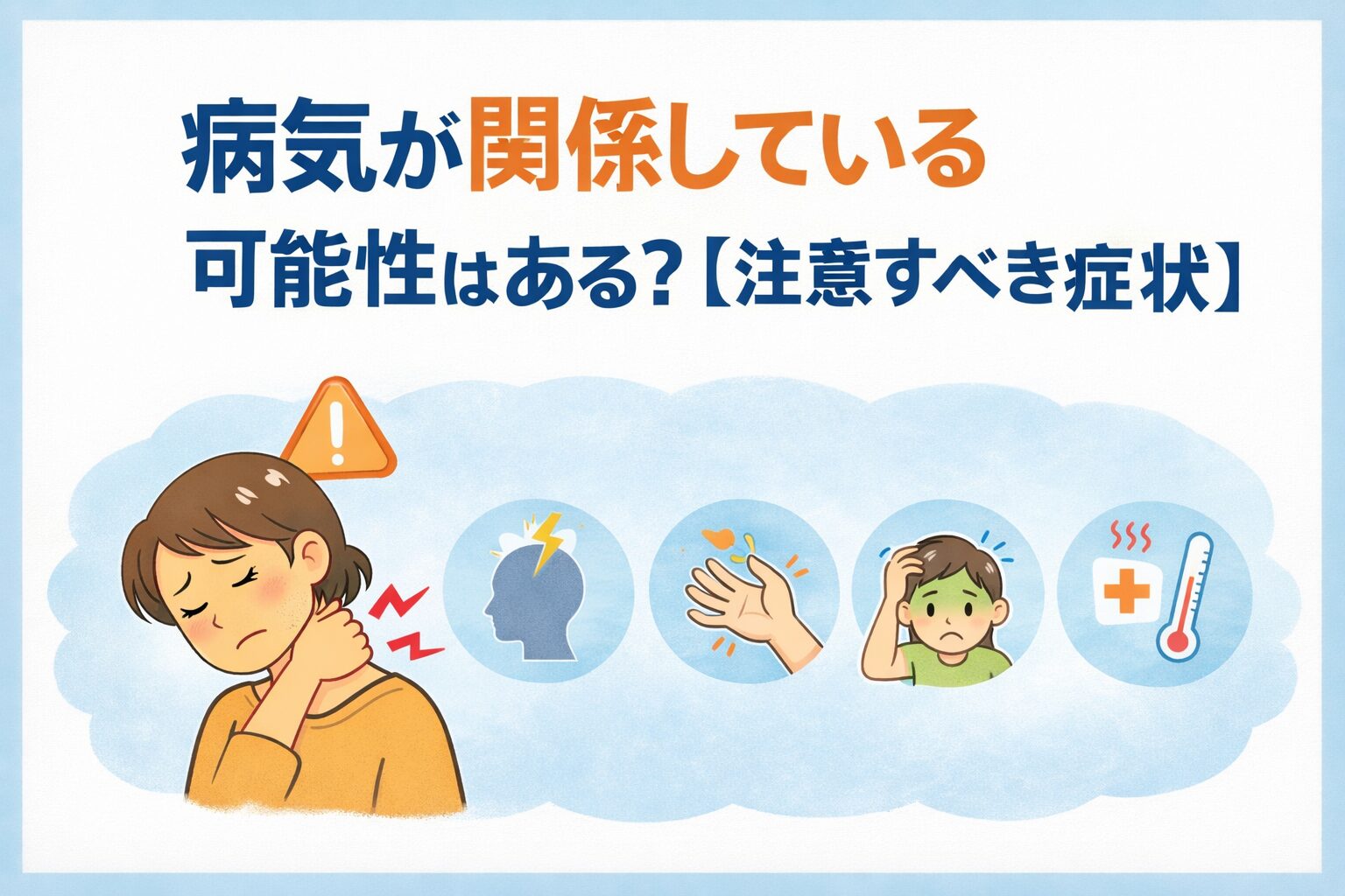 たとえば、首の痛みに加えて強い頭痛が続く、腕や手にしびれが広がる、吐き気が強い、発熱がある。こういった状態だと、単なる疲れとは言い切れない可能性も出てきます。特に、動けないほどつらい・急に悪化した、というときは慎重に考えたいところです。