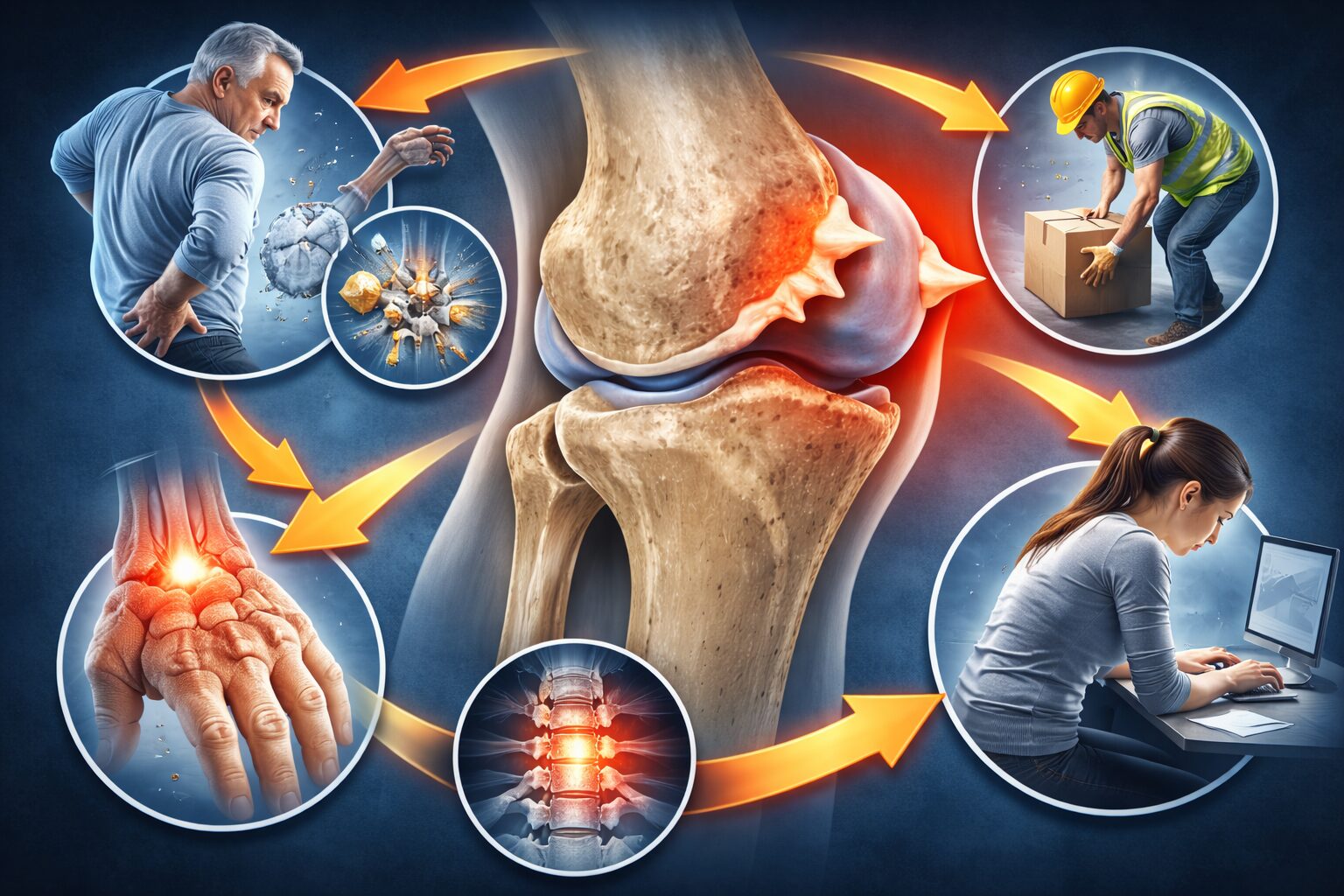 もうひとつ見逃しにくいのが、日常的な負担の積み重ねです。参考記事では、スポーツをしている方や、仕事で同じ動作をくり返す人に骨棘がみられる場合があると紹介されています。たとえば、肩や膝をよく使う競技、重い物を持つ作業、立ちっぱなしの仕事などでは、関節まわりにストレスが偏りやすいと言われています。また、猫背や反り腰のように姿勢のバランスが崩れていると、一部の関節に負担が集中しやすくなることもあるようです。すでに変形性関節症のような関節の変化がある方も、骨棘ができやすい傾向があると考えられています。